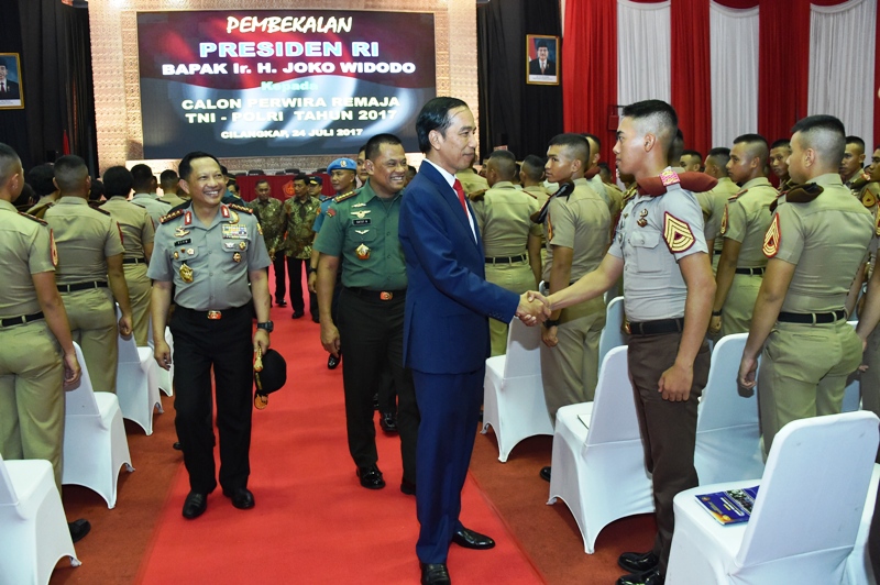 Bertempat di GOR A. Yani Mabes TNI, Cilangkap, Jakarta Timur, Presiden RI Joko Widodo memberikan pembekalan…