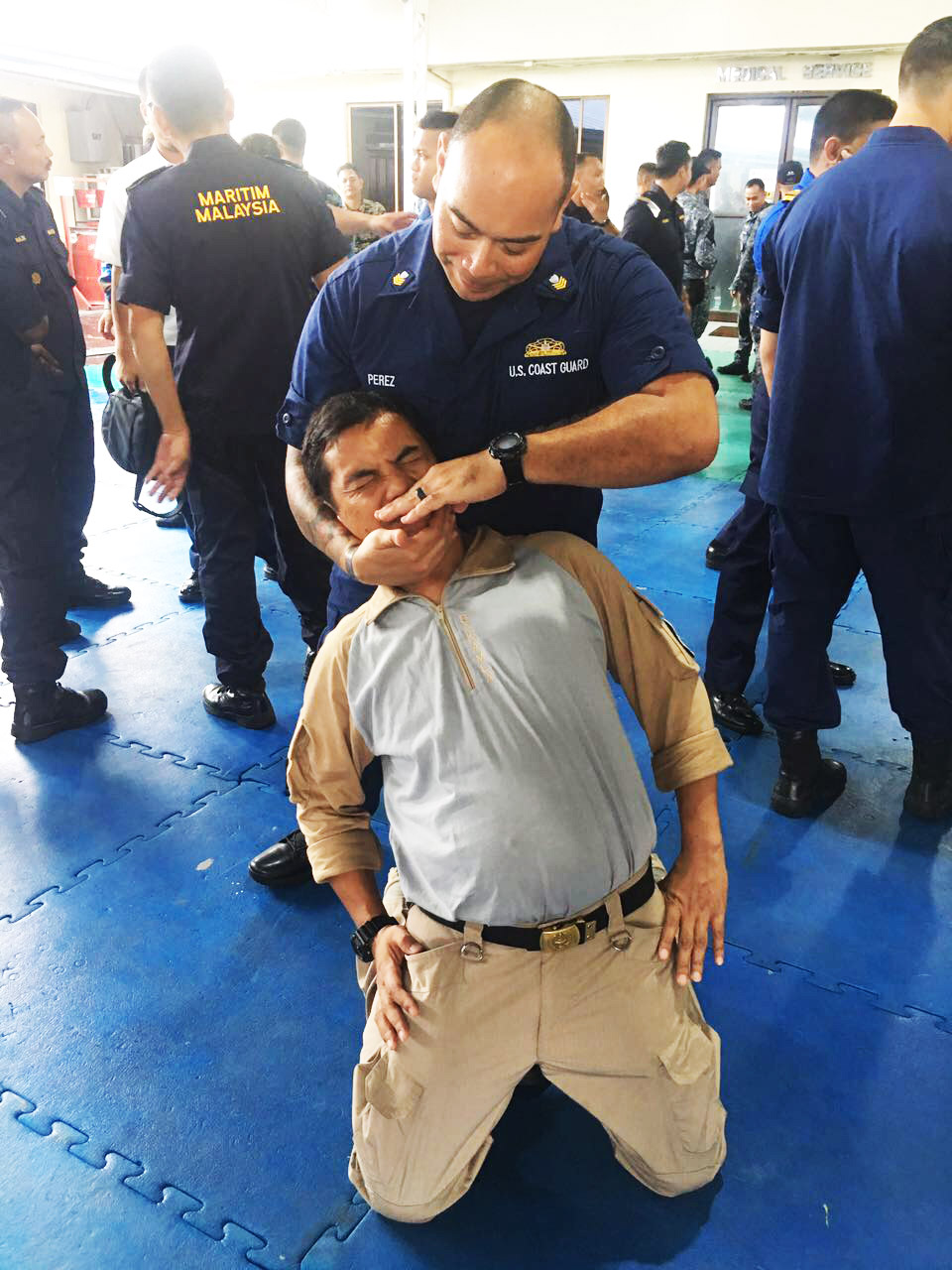 Instruktur memperlihatkan teknik melumpuhkan tersangka. Foto: Humas Bakamla