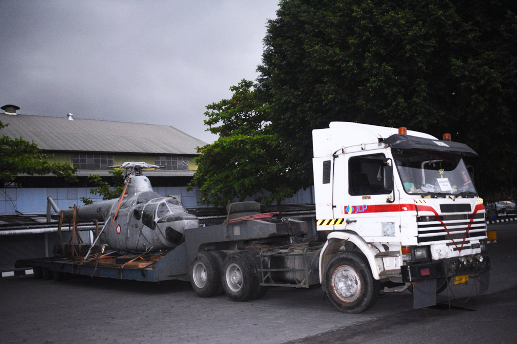 Helikopter SM-1 dibawa dari Lanud Atang Sanjaya Bogor menggunakan truk trailer. Perjalanan panjang dan melelahkan ini dilalui kurang lebih lima hari hingga akhirnya tiba di Muspusdirla pada Kamis pukul 16.30 WIB.