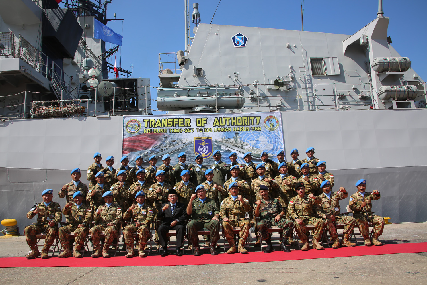 Serah terima tugas dan tanggung jawab penjaga perdamaian dilaksanakan secara simbolis dari Komandan Satgas MTF TNI Konga XXVIII-I/Unifil 2016 Kolonel Laut (P) Heri Tri Wibowo yang menyerahkan Pataka Bendera PBB kepada Komandan Satgas MTF TNI Konga XXVIII-J/Unifil 2017 Kolonel Laut (P) Alan Dahlan, S.H. dihadapan Maritime Task Force Commander.