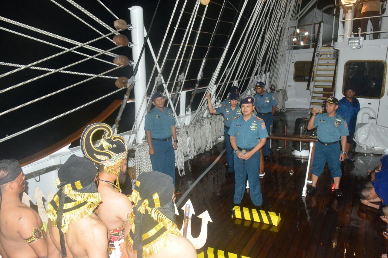 Kedatangan Kapten Davy Jones, Dewa Neptunus dan Dewi Amfrite yang muncul dari dasar lautan, disambut hangat oleh Komandan KRI Bima Suci dan Komandan Satgas KJK 2017.