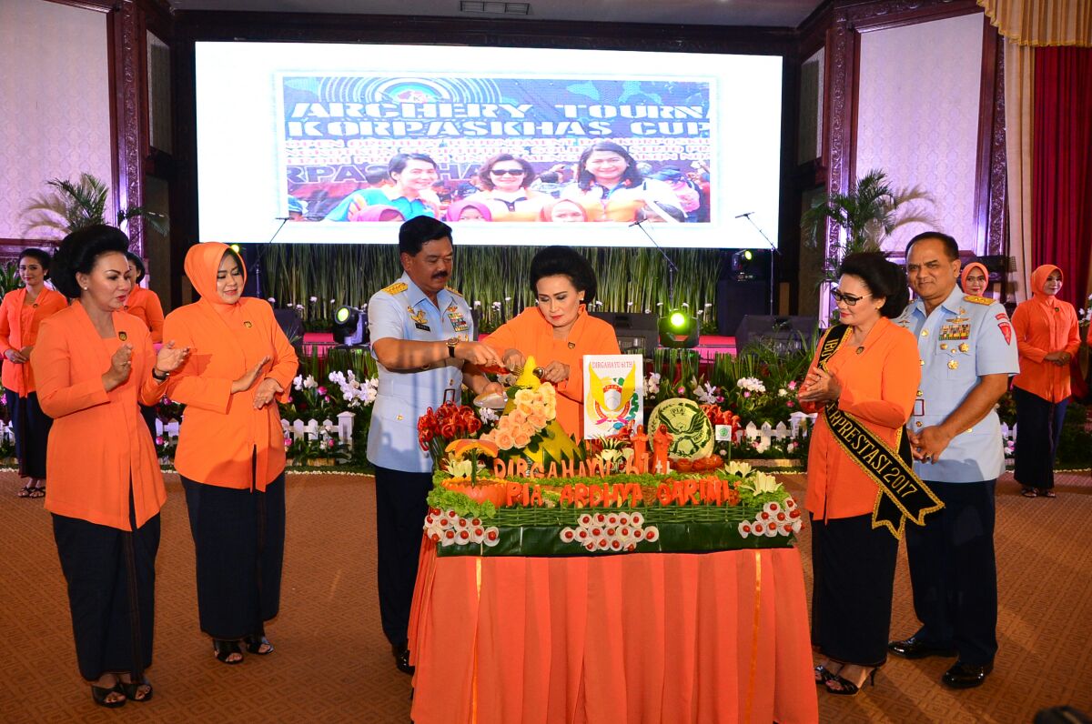 Pemotongan tumpeng oleh KSAU dan Ketum PIA Ardhya Garini. Foto: Dispenau