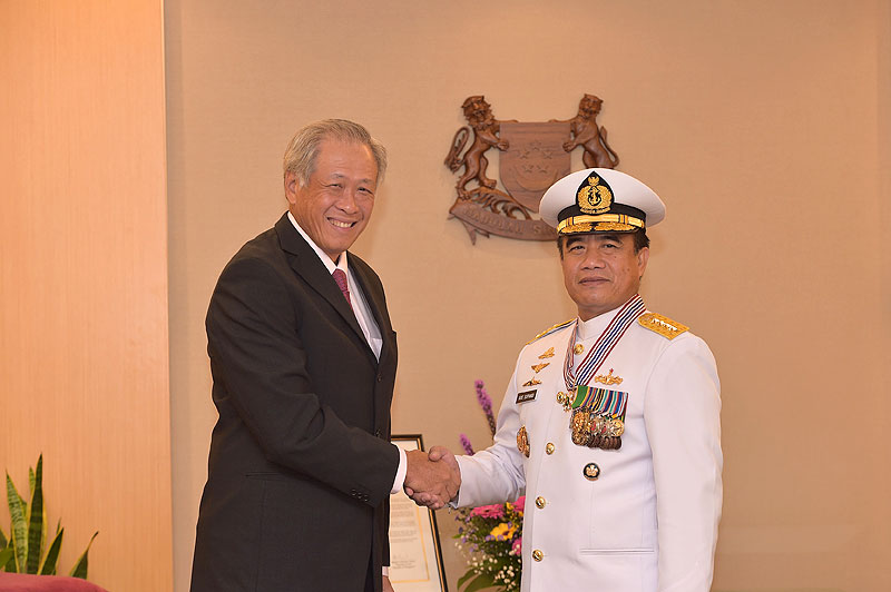 KSAL Laksamana TNI Ade Supandi menerima penghargaan militer Pingat Jasa Gemilang dari Presiden Republik Singapura…