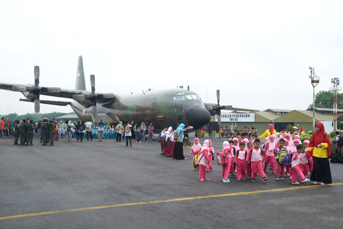 Ribuan pengunjung yang terdiri anak-anak sekolah, meramaikan apron Bandara Adi Soemarmo yang lama. Mereka datang…