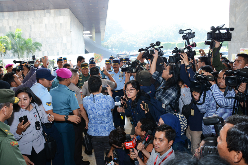 Di hadapan ratusan awak media yang memenuhi ruang rapat Komisi I, wajah Hadi pun dalam sekejap view finder kamera para pewarta foto dan kameraman.