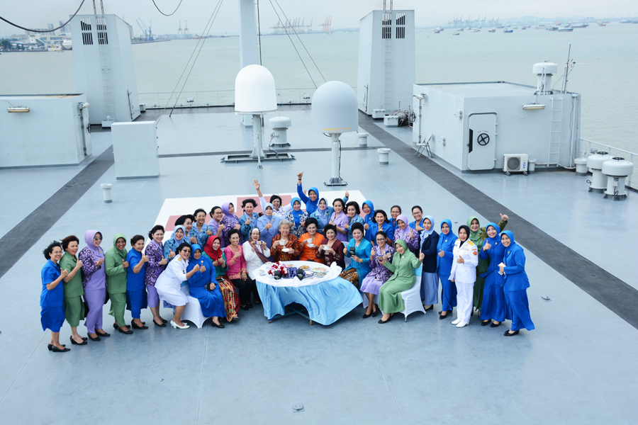 “Kita ibu-ibu juga nggak mau kalah dengan Panglima, yuk ibu kita ngopi bareng,” ajak Nanny kepada Endah Ade Supandi selaku Ketua Umum Jalasenastri dan Tetty Sugiarti Agus Suhartono (istri Panglima TNI ke-17). Ketiganya duduk satu semeja di ruang makan VIP KRI Dr. Soeharso.
