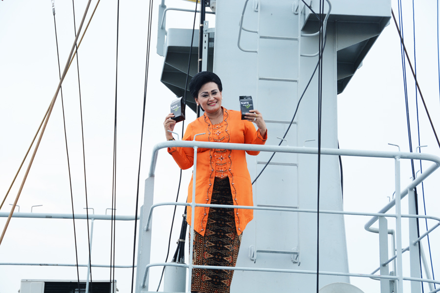 Tidak hanya mencicipi kopi Navy Seaweed Coffee yang mengandung rumput laut dengan aroma keras itu, Nanny juga tidak ragu-ragu mempromosikan kopi hitam yang dikemas oleh Primkopal Lantamal VI itu. “Nggak usah bayar ibu KSAL, ini promosi gratis dari saya,” ucap Nanny becanda kepada Endah.