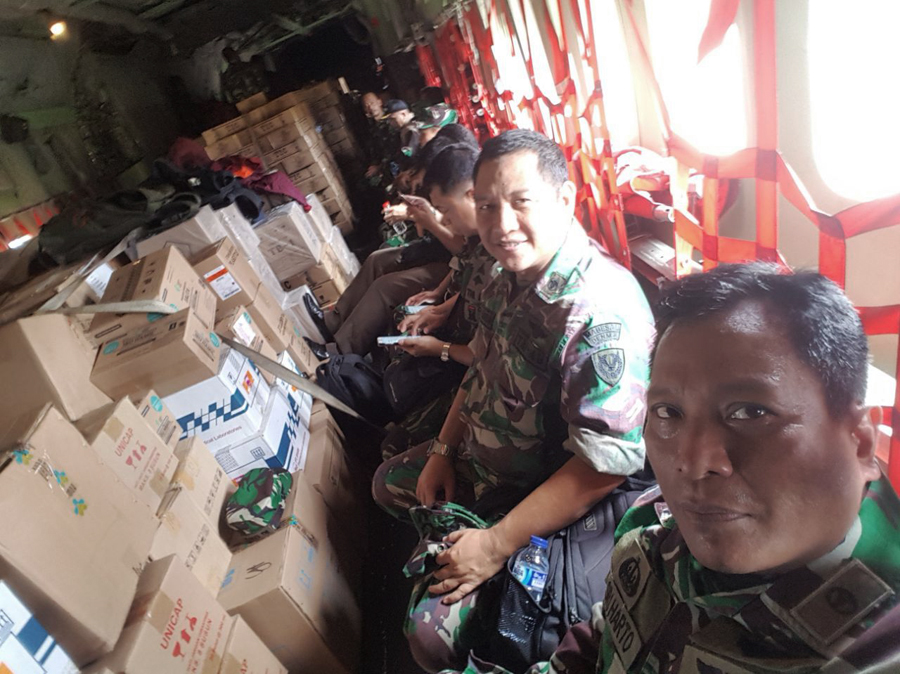 Hari ini, tenaga kesehatan dan obat-obatan serta makanan siap saji dari TNI sedang dalam perjalanan ke Asmat. Foto: Puspen TNI