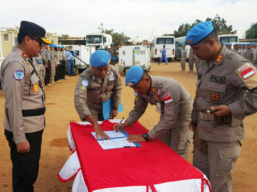 “Saya ucapkan terimakasih dan apresiasi yang setinggi tingginya kepada FPU 9 yang sudah melaksanakan tugas dengan sangat baik pada misi UNAMID, saudara-saudara adalah para peacekeeper Indonesia yang berhasil mendarmabhaktikan diri untuk menjaga kehormatan bangsa dan negara di dunia internasional. Selamat kembali ke tanah air, sampaikan salam hormat saya buat keluarga,” ujar Brigjen Krishna Murti di depan pasukan FPU 9 dan FPU 10 Indonesia.