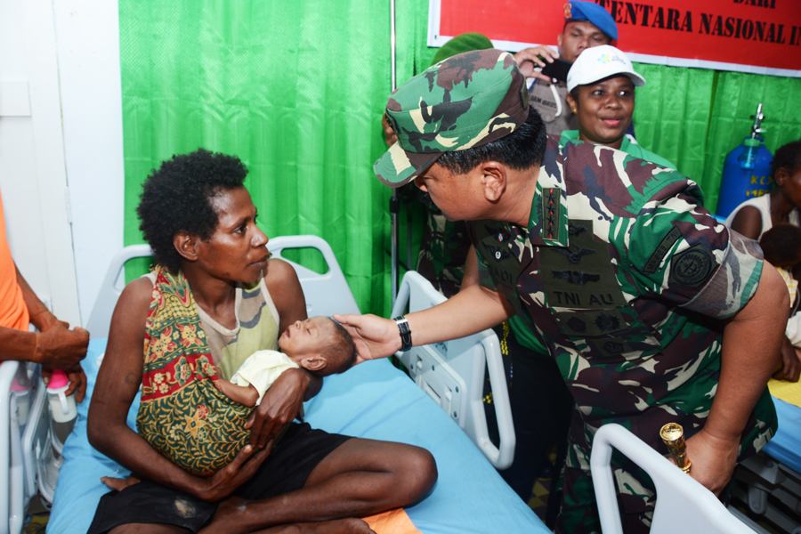 “Beritanya, penderita campak sebanyak 600 sudah bisa ditangani, artinya permasalahan campak sudah tidak ada lagi. Kedua, bahwa Satgas telah mampu merambah 224 kampung dan memberikan vaksin kepada 13.000 warga. Langkah berkutnya kita akan laksanakan pemantauan di 224 kampung, karena ada 27 kampung yang didatangi belum memberikan laporan meski diyakini sudah ada di sana,†beber Panglima TNI.