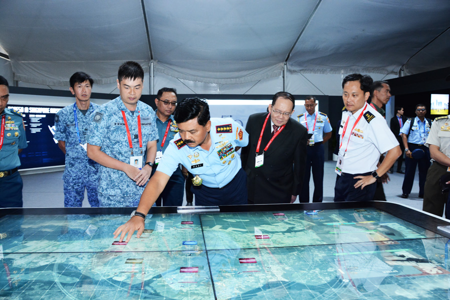 - Panglima TNI melihat digital tactical floor game RSAF. Foto: beny adrian