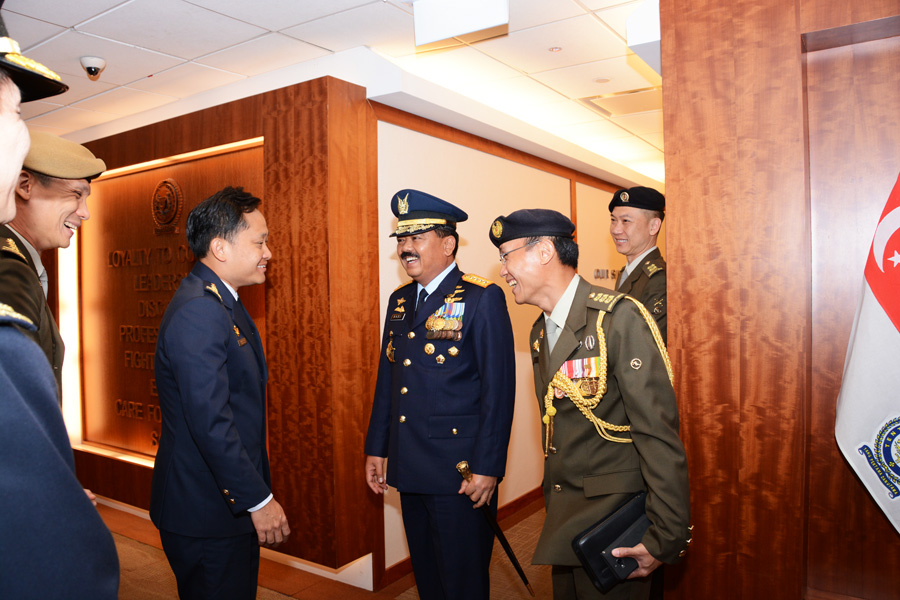 - Panglima TNI Marsekal Hadi Tjahjanto ditemui Menteri Pertahanan Singapura Ng Eng Hen. Foto: beny adrian