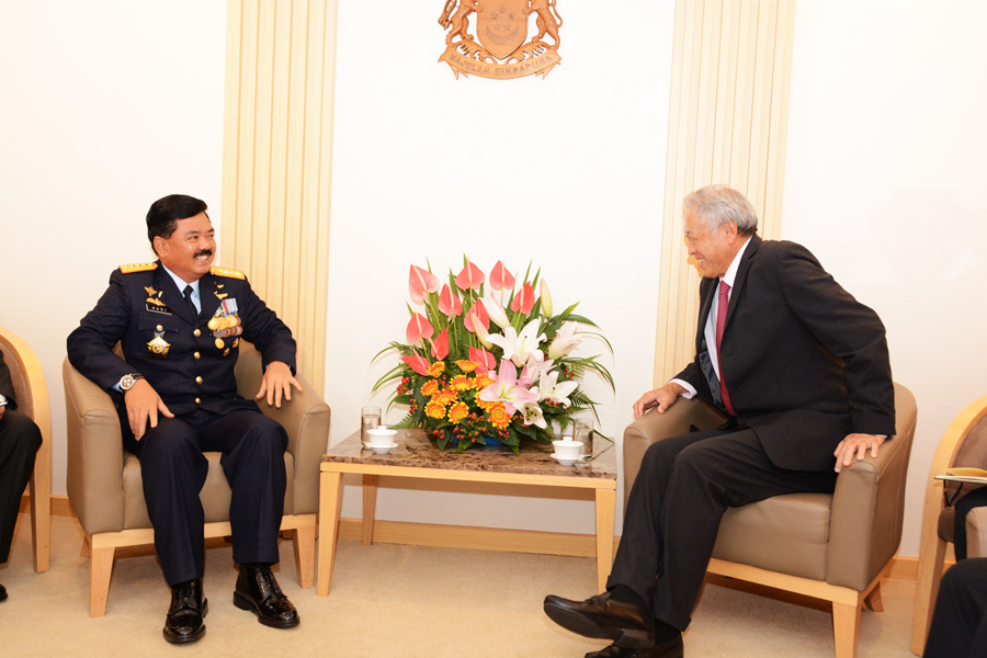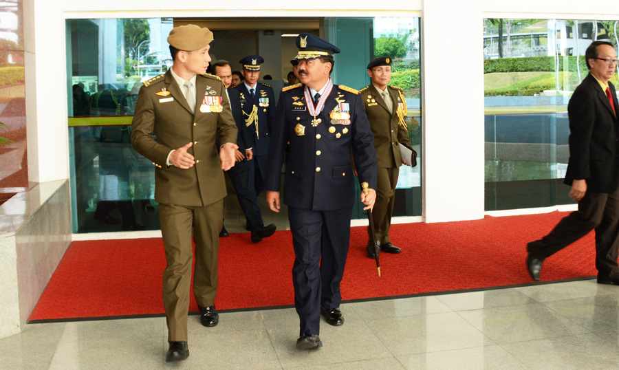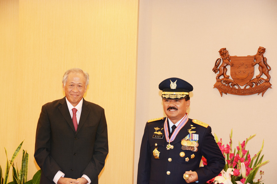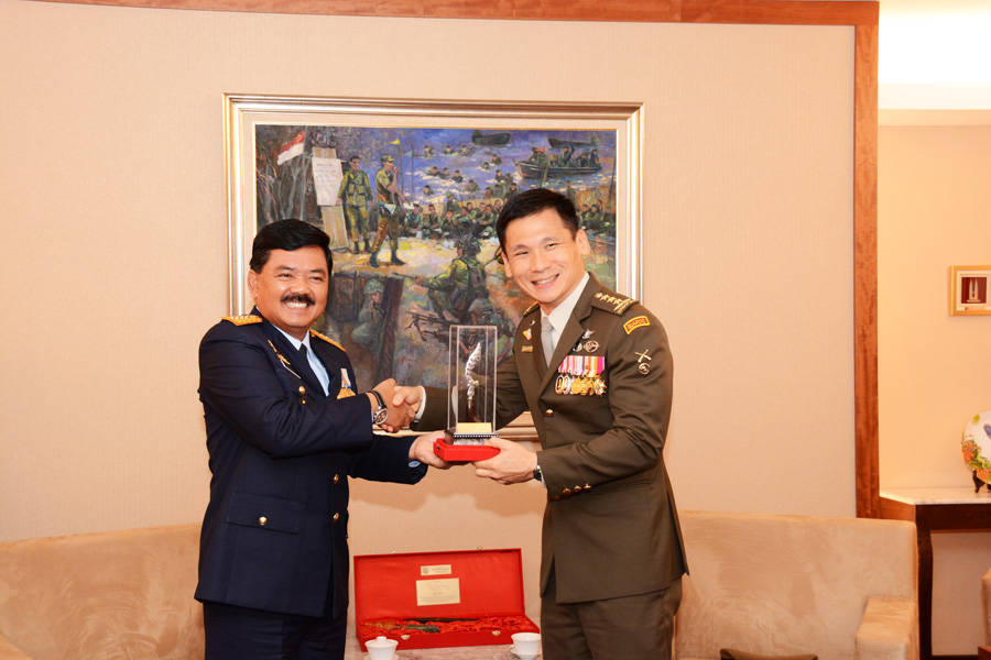 - Menhan Singapura memberikan ucapan selamat kepada Panglima TNI. Foto: beny adrian