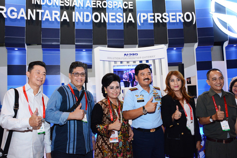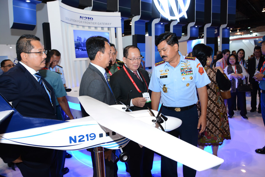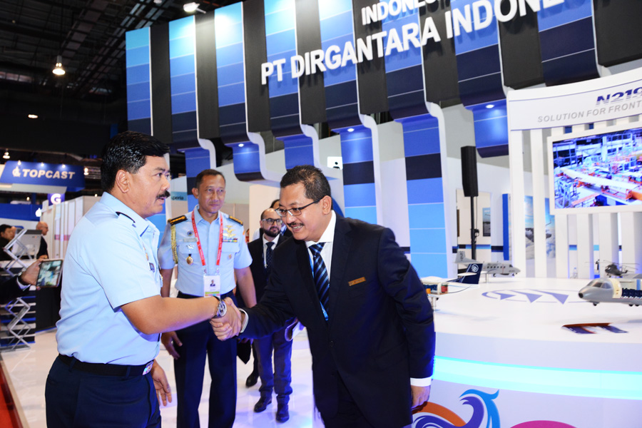 - Dirut PTDI menyampaikan sejumlah potensi penjualan selama pameran kepada Panglima TNI. Foto: beny adrian