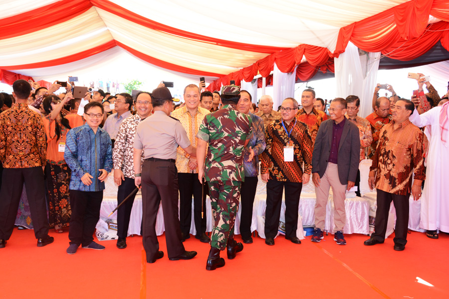 Presiden Jokowi menyapa insan pers nasional saat tiba di tenda acara. Foto: beny adrian