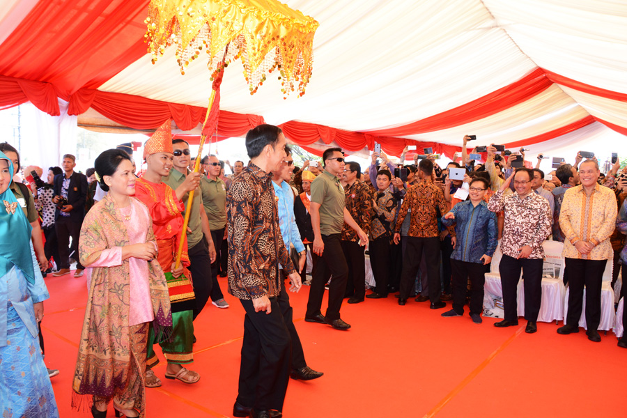 Disambut gegap gempita warga Kota Padang, Presiden Joko Widodo menghadiri peringatan Hari Pers Nasional (HPN) 2018 yang berlangsung di Danau Cimpago, Padang, Sumatera Barat, Jumat (9/2/2018).