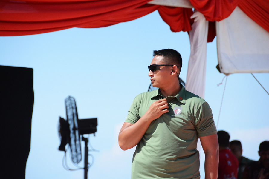 Paspampres dengan baju kaos hijau saat mengawal Jokowi di Padang. Foto: beny adrian