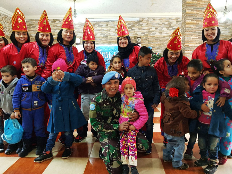 Foto bersama tim penari piring Wan TNI bersama Dansatgas dan anak-anak Lebanon. Foto: Pen Konga XXIII-L/Unifil