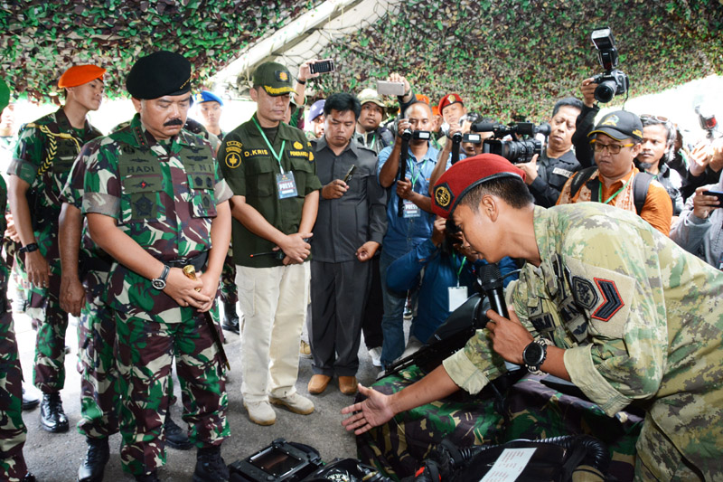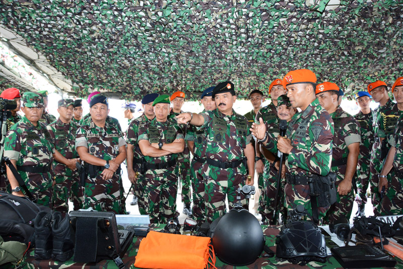 Panglima TNI mengecek kesiapan perlengkapan Yonko Paskhas 464. Foto: beny adrian