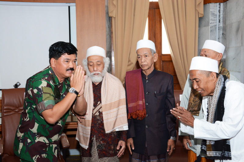 Panglima TNI menyalami para ulama yang mendampingi Abuya Muhtadi. Foto: beny adrian