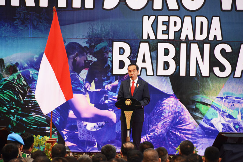 Dalam pengarahannya, Presiden Jokowi mengungkapkan apresiasinya kepada sleuruh Babinsa atas pengabdian dan dedikasinya dalam menjaga kemanan dan ketertiban.