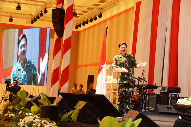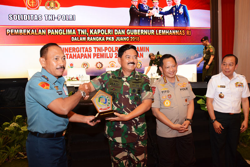 Panglima TNI Marsekal ]Hadi Tjahjanto memberikan pembekalan dengan tema “Sinergi TNI-Polri Dalam Menjamin Keamanan Pemilu 2019â€Â kepada 1.137 Perwira Siswa…