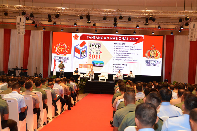 Ditambahkan Hadi, selama pelaksanaan Pilpres 2019, TNI-Polri harus mewujudkan terpeliharanya kemananan dan mencegah terjadinya sikap anarkistis.