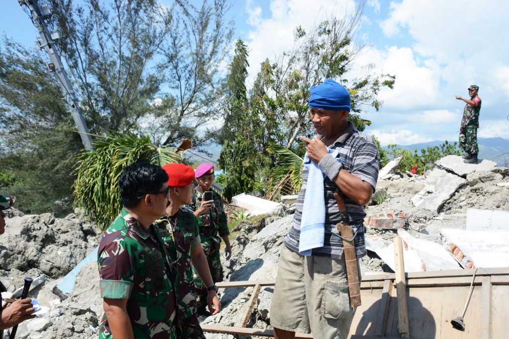 Tidak ikut mendampingi Presiden Jokowi meninjau lokasi gempa di Palu, Panglima TNI didampingi Pangkostrad Letjen TNI Andika Perkasa langsung menuju Desa Petobo, Kecamatan Palu Selatan, Kota Palu. Tentu seizin Presiden, Hadi pun menuju lokasi tanpa pengawalan.