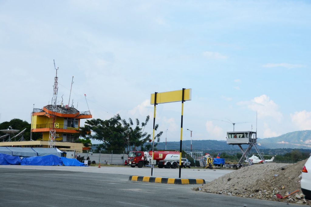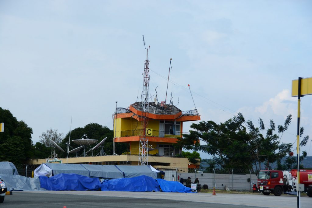 Sementara kondisi menara pengatur lalu lintas udara (ATC) masih dalam kondisi rusak. Untuk itu pengaturan lalu lintas udara dilakukan dari ATC darurat alias Mobile ATC Tower.