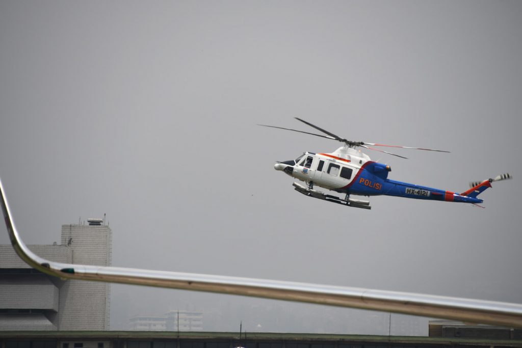 Setelah menyaksikan dua kali take off-landing helikopter Bell-412EP milik Polri dari arah Lanud Hussein Sastranegara, rasa penasaran pun mulai menjalar. Lagi apakah heli ini? Test flight? Atau training pilot.