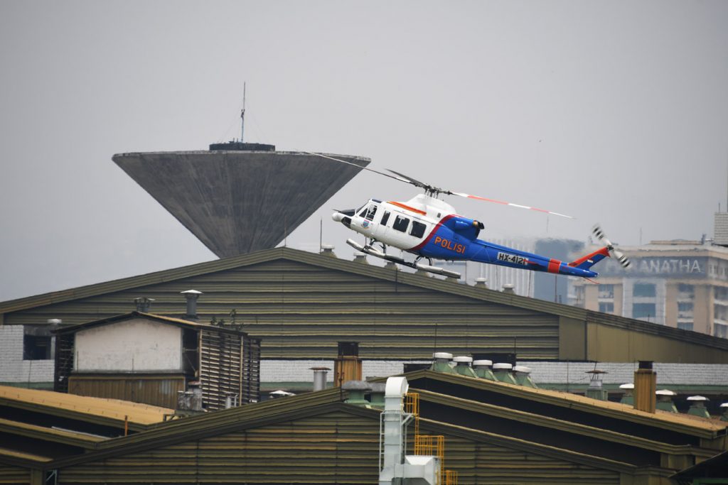Helikopter Bell-412EP Polri. Helikopter jenis ini cukup banyak beroperasi di Indonesia, termasuk oleh Penerbad. Foto: beny adrian/ mylesat.com