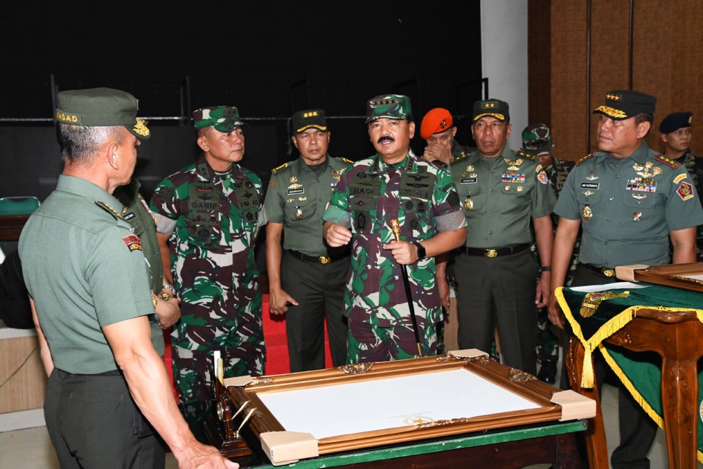 Panglima TNI didampingi KSAD, menerima penjelasan dari panitia. Foto: beny adrian/ mylesat.com