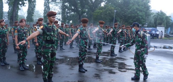 Tim kesehatan dari Satuan Kesehatan (Satkes) AAU yang didukung tim Detasemen Markas (Denma) AAU tampak sigap melaksanakan langkah antisipasi ini sebelum memasuki ksatrian AAU.