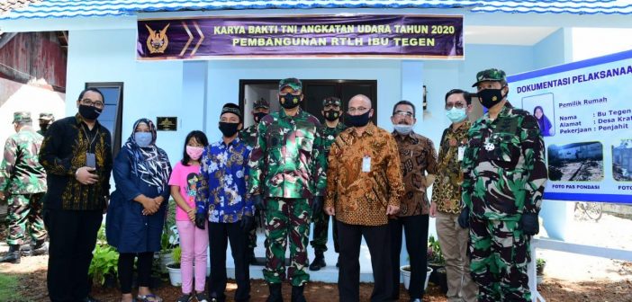 Selanjutnya KSAU menyerahkan secara simbolis cinderamata kepada perwakilan mitra kerja TNI AU dalam kegiatan karya bakti ini. Yaitu Bank Mandiri yang diwakili Senior Vice President Teddy Y. Danas, Bank BNI diwakili Vice President Muin Fikri, Bank BRI diwakili Executive Vice President Achmad Suadi, dan Pertamina diwakili Executive General Manager Regional Jatim, Bali, dan Nusa Tenggara C.D. Sasongko Dilanjutkan dengan penyerahan secara simbolis kunci rumah sekolah luar biasa (SLB) serta rumah tidak layak huni (RTLH).