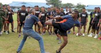 MYLESAT.COM – Prajurit Batalyon Komando 462 Paskhas mengikuti pengenalan seni beladiri Muay Thai di lapangan…