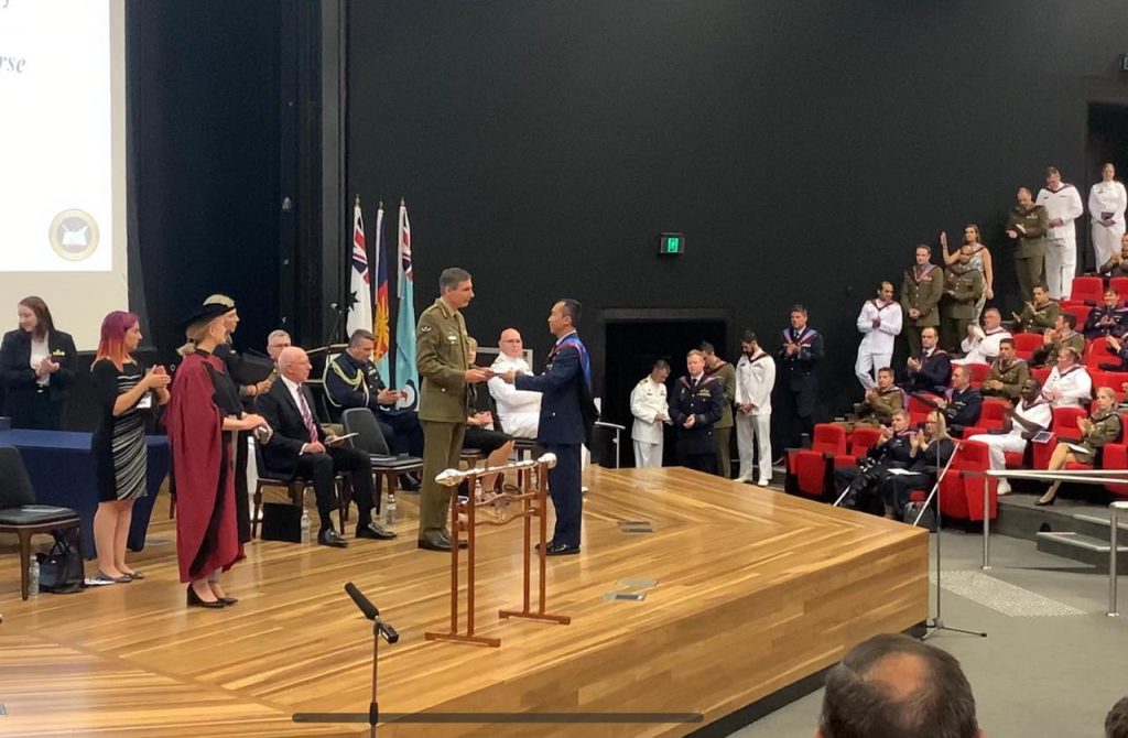 Panglima AB Australia Jenderal Angus Campbell memberikan tanda kelulusan kepada Mayor Pnb Idam Satria. Foto: Dispenau