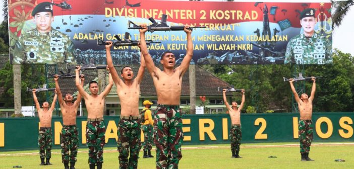 Senam senjata dipandu Bintara Jasmani (Bajas) Divif 2 Kostrad. Foto: Kostrad