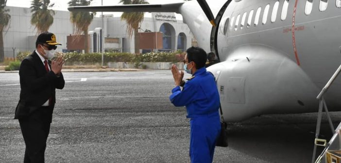 Hingga saat ini pesawat sudah mencapai Khartoum di Sudan dan awak pesawat harus menjalani pemeriksaan kesehatan. Semua dilakukan untuk menjaga daya tahan tubuh semua kru di pesawat.
