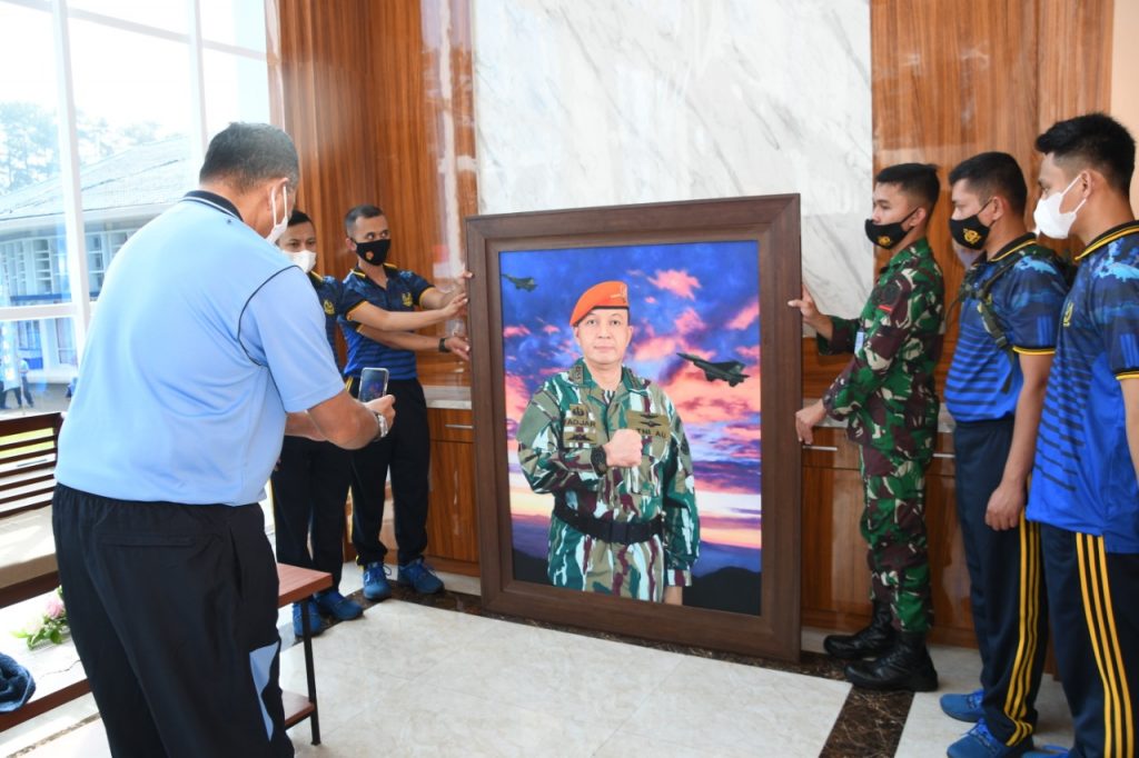 KSAU mendapat surprise lukisan dirinya di Perpustakaan Widyasana. Foto: beny adrian/ mylesat.com