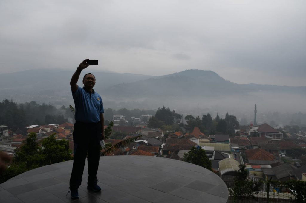 KSAU ber-swa foto di tempat tertinggi di Seskoau dengan latar Kota Bandung. Foto: beny adrian/ mylesat.com