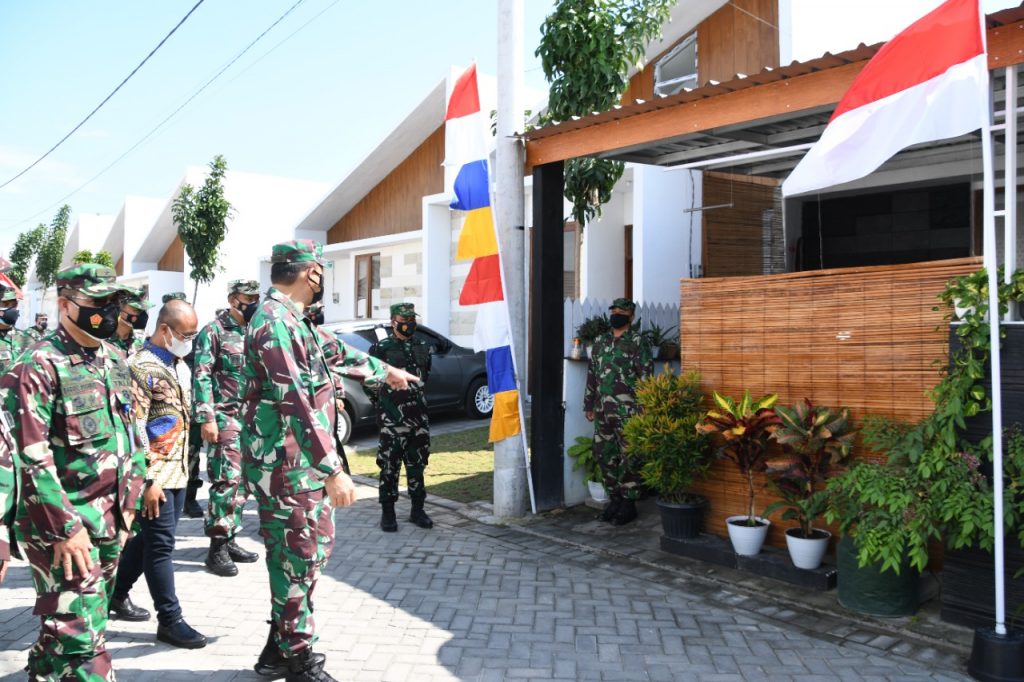KSAU melewati rumah Peltu Satria saat berkeliling usai meresmikan perumahan Griya Ardhya Garini di Madiun. Foto: beny adrian/ mylesat.com