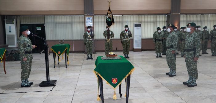 MYLESAT.COM – Panglima Kostrad (Pangkostrad) Letjen TNI Dudung Abdurachman, memimpin acara sertijab Kepala Staf Kostrad (Kaskostrad) dan Tradisi Korps prajurit Kostrad di ruang Mandala Markas Kostrad, Gambir, Jakarta Pusat, Kamis (30/9/2021).