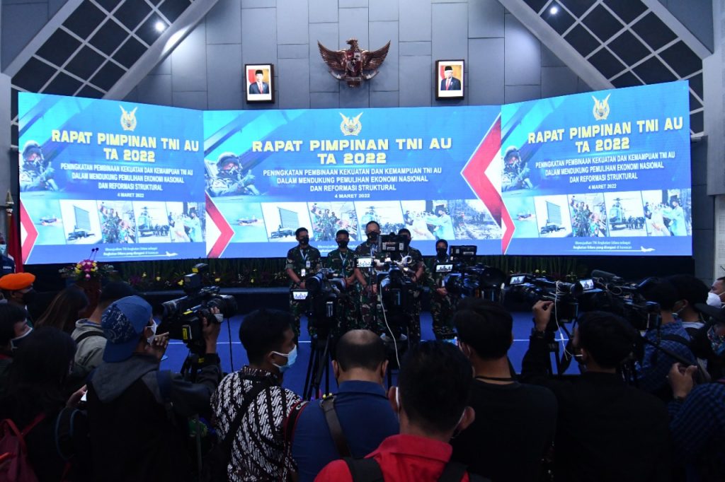 Itulah beberapa poin yang ditekankan KSAU Marsekal TNI Fadjar Prasetyo saat membuka Rapat Pimpinan (Rapim) TNI AU Tahun 2022 di Gedung Suharnoko Harbani Mabesau, Cilangkap, Jakarta, Jumat (4/3/2022). Rapim ini nmerupakan tindak lanjut dari Rapim Kementerian Pertahanan dan Rapim TNI-Polri.