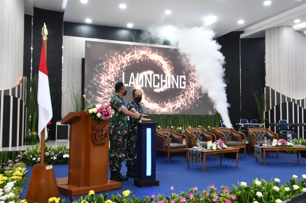 KSAU dan Askomlek KSAU secara bersamaan menekan tombol sebagai seremoni edisi perdana Jurnal Patriot Biru. Foto: beny adrian/ mylesat.com