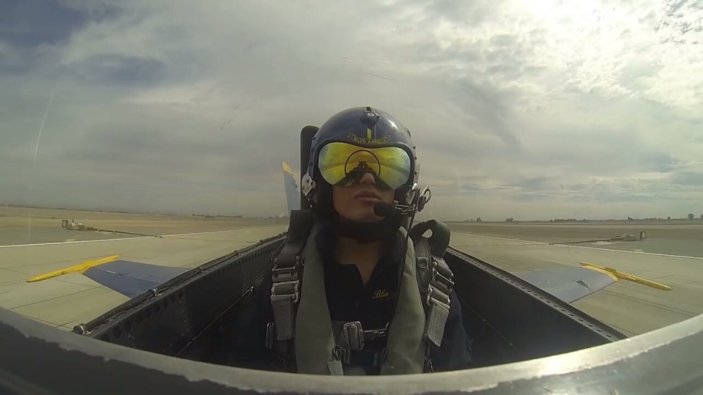Captain Niloofar Rahmani saat diberi kesempatan joy flight tim aerobatik Blue Angels di Naval Air Facility El Centro, California pada 11 Maret 2015. Foto: US Navy
