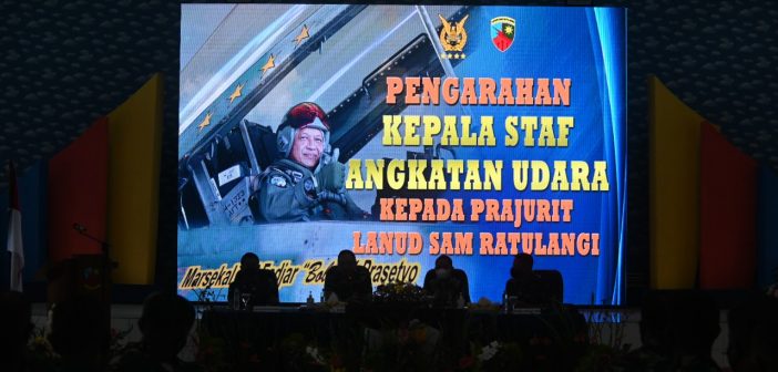 Pengarahan KSAU Marsekal TNI Fadjar di hadapan anggota Lanud Sam Ratulangi. Foto: beny adrian/ mylesat.com