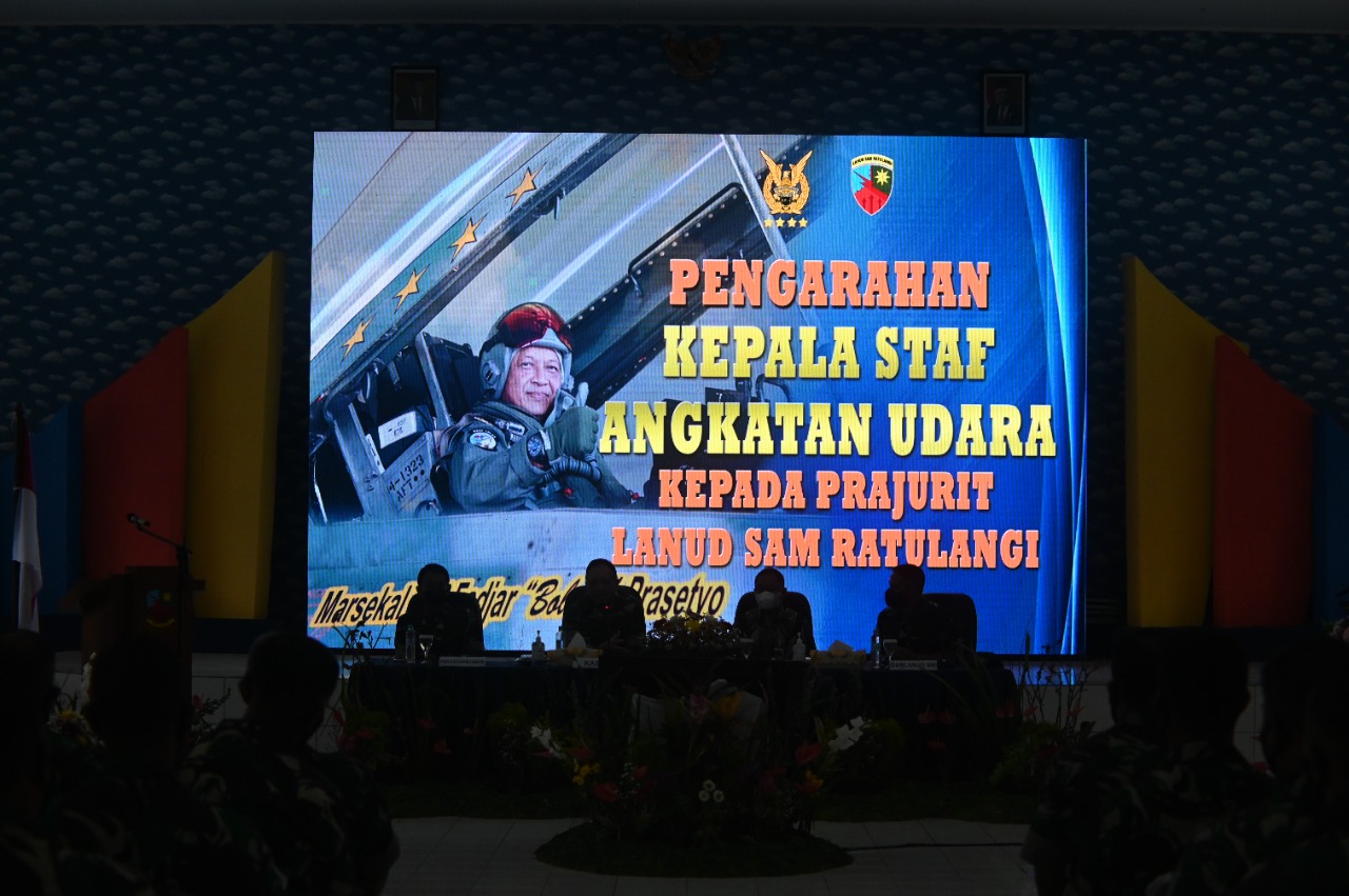 Dalam sambutannya sebelum mendengarkan arahan KSAU di Balai Prajurit, Marsma TNI Mohamad Satriyo mengatakan bahwa Lanud Sam Ratulangi memiliki tugas melaksanakan kesiapsiagaan dan pembinaan operasi terhadap satuan jajaran.