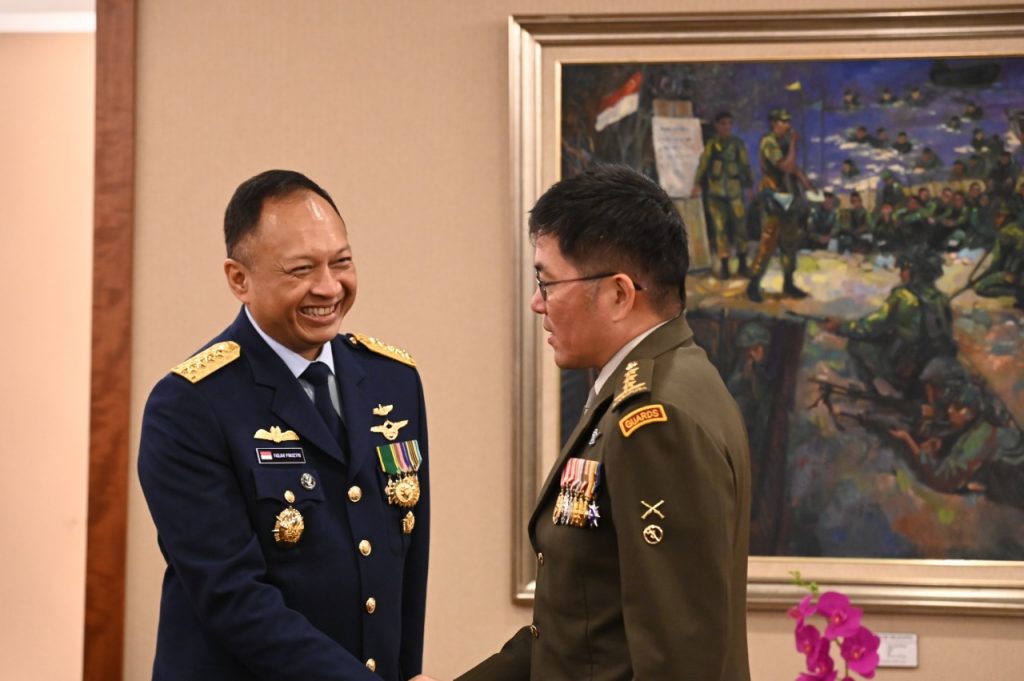 KSAU Marsekal Fadjar Prasetyo dan Kepala Angkatan Pertahanan Letjen Melvyn Ong. Foto: beny adrian/ mylesat.com