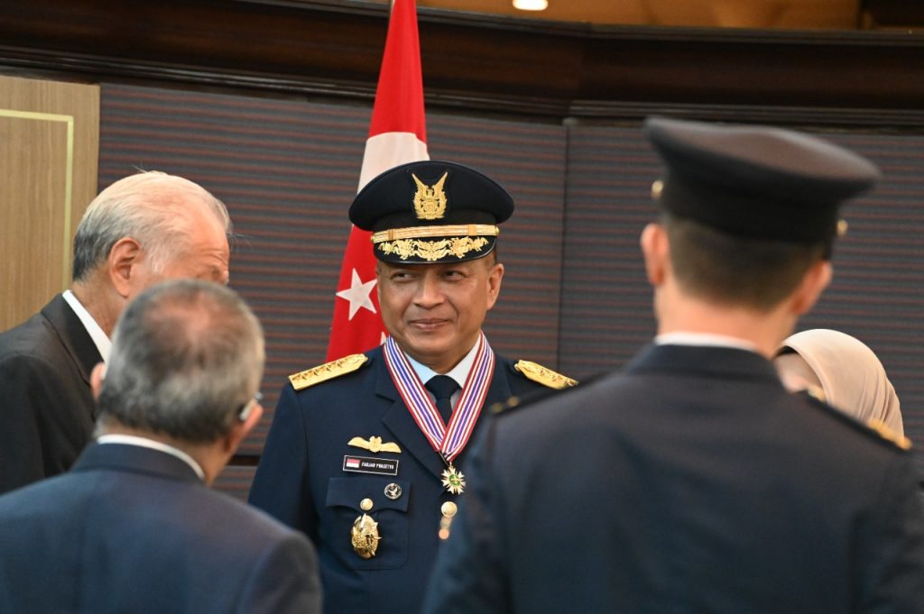 MYLESAT.COM – Kepala Staf Angkatan Udara Indonesia (KSAU) Marsekal TNI Fadjar Prasetyo, dianugerahi penghargaan militer bergengsi Singapura, Pingat Jasa Gemilang (Tentera) atau Meritorious Service Medal (Military) oleh Presiden Halimah Yakub.