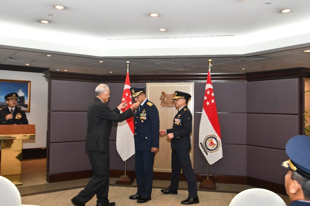 Bintang kehormatan ini disematkan oleh Menteri Pertahanan Dr Ng Eng Hen kepada Marsekal Fadjar dalam sebuah upacara di Kementerian Pertahanan (MINDEF) Singapura, Kamis (13/10/2022).